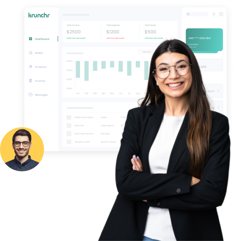After you sign up with Krunch, we’ll pair you with a dedicated bookkeeper.
